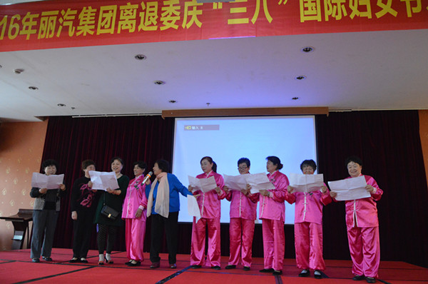 為慶祝第106個國際婦女節,展示離退休女職工的風采,今天上午,麗汽集團離退委在八一賓館舉行慶“三八”國際婦女節才藝展示活動,260余名離退休女職工表演了扇子舞、排舞、詩朗誦、太極表演、獨唱、合唱、腰鼓、三句半等節目,既展示了離退休職工的精神風貌,也展示了他們豐富多彩的退休生活。全體人員起立合唱的一曲《革命人永遠是年輕》將活動推向了高潮。