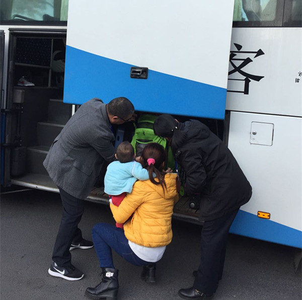 看年輕媽媽在艱難的調(diào)整著嬰兒車前進(jìn)的方向,周麗梅趕緊上前,“我來(lái)幫你推吧。”她順勢(shì)接過(guò)了嬰兒車。傍晚的高鐵配載點(diǎn)已經(jīng)早早不見(jiàn)了太陽(yáng)的蹤影,室外的溫度又低,風(fēng)又大。陰冷的寒風(fēng)吹得人陣陣發(fā)冷,周麗梅拉了拉衣領(lǐng)徑直將嬰兒車推向麗水到松陽(yáng)的班車前,使出全力一鼓作氣將嬰兒車上的行李放入行李倉(cāng),再將嬰兒車折疊好后也放了進(jìn)去。放好后周麗梅還不忘交代正在忙的駕駛員,下車時(shí)幫這位年輕媽媽卸下行李。年輕媽媽站在邊上一個(gè)勁地說(shuō)著謝謝,她懷中的小寶貝在媽媽的感染下,也雙手作揖對(duì)周麗梅表達(dá)著謝意。