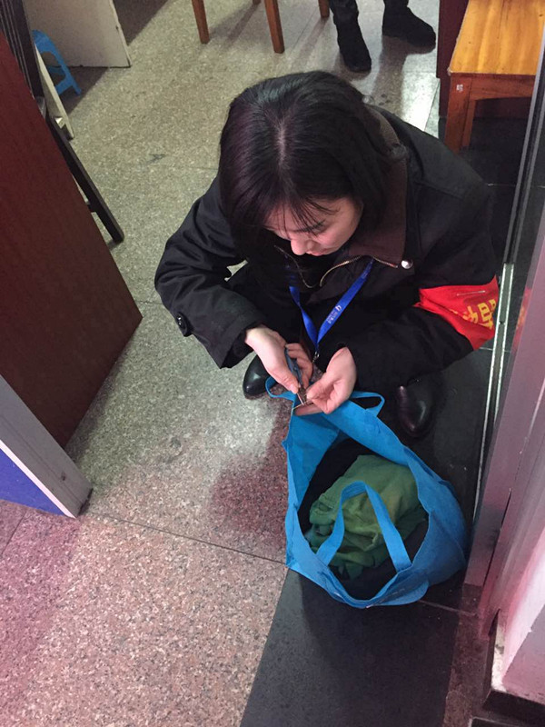 原來(lái)老伯一時(shí)疏忽只拎了環(huán)保袋一邊的帶子,由于一根帶子的承受力有限,帶子的一頭斷了。老伯邊撿起東西住袋里放邊嘟囔著:“這下怎么辦好呢,又沒(méi)有其它的袋子。”“我看縫一縫還能用,我們服務(wù)臺(tái)備有針線,我?guī)湍憧p一縫。”程媛園安慰到。說(shuō)著,快步跑進(jìn)服務(wù)臺(tái),從便民盒里拿出針線認(rèn)認(rèn)真真的縫了起來(lái)。雖然一個(gè)環(huán)保袋值不了多少錢,可是她還是縫得非常地細(xì)致。沒(méi)一會(huì)兒環(huán)保袋縫好了,老伯接過(guò)袋子還不忘帶上老花鏡看上一番,“你的針線活不錯(cuò),要不是我的眼晴老花了,我的針線活也是可以的,我們以前當(dāng)兵的時(shí)候針線活都是自己做的。你的服務(wù)這么好,我一定要把剛才給你拍的照片發(fā)到我的戰(zhàn)友群里表?yè)P(yáng)表?yè)P(yáng),你們東站的服務(wù)不錯(cuò)。”