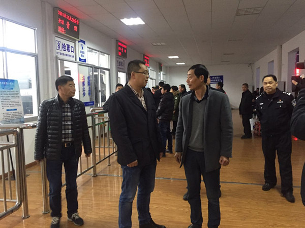 陳豪區長詳細詢問了東站春運方案以及惡劣天氣下應急預案制定情況。陳區長指出,東站要進一步樹立服務群眾和春運安全意識;要抓好細節,強化措施,確保春運工作安全有序;要以人為本,增強服務意識,確保旅客走的好,走的順;認真排查安全隱患,確保旅客踏上平安回家旅途。