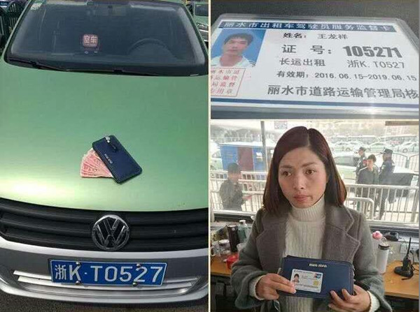 3月8日早上11點30分,長運出租車分公司浙KT0527出租車駕駛員王龍祥師傅在車上拾到乘客遺失錢包,內有現金1100多元、4張銀行卡、一張社保卡。隨后他主動開車到高鐵站,將錢包上交到市運管駐高鐵站運管站。