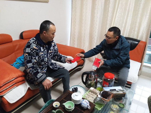 “我們?nèi)腋兄x公司領(lǐng)導(dǎo)和同事們的幫助”,3月24日,當(dāng)葉榮明接過工會(huì)主席王斌遞過來的捐款時(shí)哽咽著說。