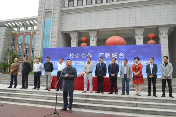 簽約儀式上,麗汽集團黨委書記、董事長葉茂和麗水職業技術學院黨委書記梁憶南分別致辭,預祝兩家單位的“校企合作”越辦越好,如同春天播下的種子,能結出合作雙贏的碩果。