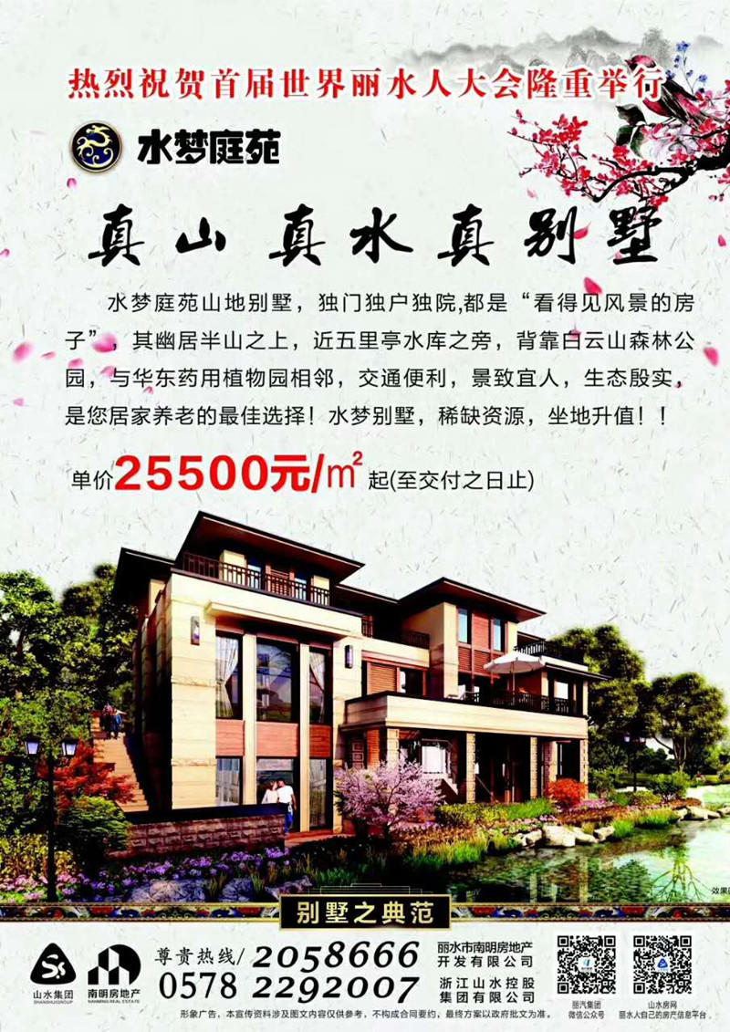 首屆世界麗水人大會于2017年9月26日在蓮都區召開,這是一場屬于所有麗水人的盛會。南明房地產抓住這一有利時機,將水夢庭苑別墅房源介紹給參加會議的代表們。經過文字修改、排版確認,將3000份資料分別派送至東方文廷、萬廷、華僑開元等酒店,讓前來參加會議的代表們第一時間能了解到水夢庭苑別墅的相關信息。