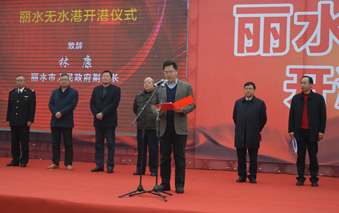 林康副市長在開港致辭中指出,建設無水港是麗水提升產業支撐能力的一件大事,是推動麗水開放發展的一件喜事,也是市委市政府一直牽掛的一件心事。無水港的開港不是終點,而是新的起點。無水港的經營者、管理者、服務者要堅持“擴大開放、整合資源、合作共贏”的理念,凝聚智慧、齊心合力,把無水港打造成為開放之港、服務之港、財富之港。