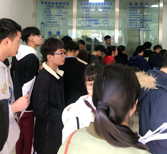 3月3日,高校開學(xué)首日,前來(lái)報(bào)名的人數(shù)就達(dá)到了80人。面對(duì)高校學(xué)生爭(zhēng)相報(bào)名的火熱場(chǎng)面,汽校馬上啟動(dòng)預(yù)案,聯(lián)系大巴車負(fù)責(zé)兩高校報(bào)名學(xué)生的集中接送。所有工作人員也放棄午休時(shí)間,加班加點(diǎn)為學(xué)員們辦理報(bào)名手續(xù)。學(xué)校為確保學(xué)生報(bào)名注冊(cè)工作順利進(jìn)行,還安排專人對(duì)每一個(gè)報(bào)名學(xué)員進(jìn)行全程陪同。報(bào)名服務(wù)中心的工作人員從8點(diǎn)上班一直忙到傍晚18:30才完成當(dāng)天的報(bào)名注冊(cè)工作。