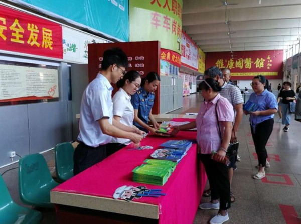 活動中,通過發放安全知識宣傳單、粘貼海報、咨詢服務等方式,為過往旅客、周邊店面承租戶、駕駛員、站務員等送上安全行車、用電安全、職業衛生等安全知識及相關法律法規知識。