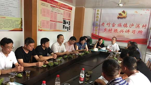 沙溪村村民主任許永衛(wèi)隨后就沙溪村在“旅游+文化”發(fā)展上具有的得天獨厚優(yōu)勢進行了介紹。他說:沙溪村是目前華東地區(qū)最具有濃郁畬族特色的山村,開展過畬族婚嫁、祭祖表演、畬歌對唱、“山哈大席”等一系列具有畬族特色的風情旅游文化活動。其中“山哈大席”自2013年以來已經(jīng)舉辦300場,但由于受資金、內(nèi)容提升和文化包裝三方面的制約尚未形成產(chǎn)業(yè)。村里有意向通過“村企合作”將其打造成以田園為背景,集文化演藝為一體的畬族鄉(xiāng)村宴會。在此基礎(chǔ)上再推進三產(chǎn)融合,實現(xiàn)“景村合一”的遠期目標。