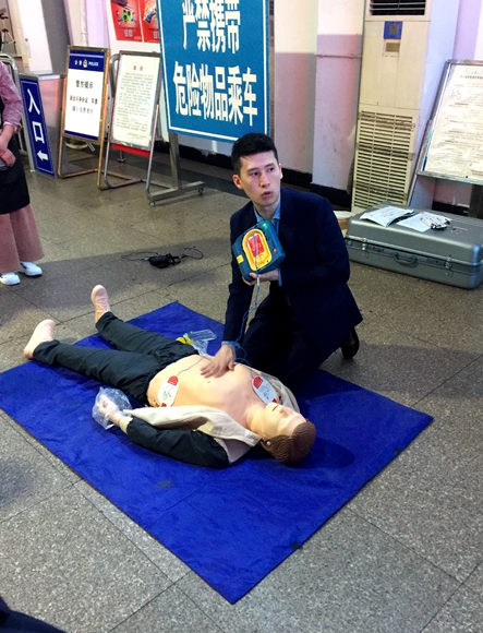 3月21日中午,由麗水市紅十字會提供的壹臺自動體外除顫器正式投放至麗水客運東站,用于東站的應急救援工作。麗水市紅十字會的工作人員在東站售票廳進行了儀器設置并進行現場應急救護培訓。麗水東站業務站、保衛科的工作人員以及周邊商戶參加了培訓。