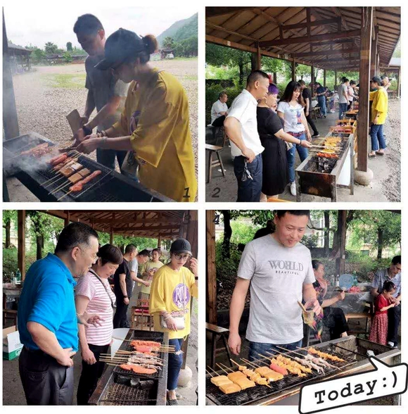 活動現(xiàn)場,大家自己動手燒烤,包餃子,隨著一陣陣孜然的香氣,餃子肉香的散開,讓人胃口大開,大家有說有笑,其樂融融。果然,好天氣,好景就是要跟美食才能相配!