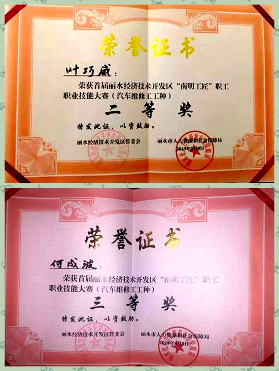 日前,首屆麗水經濟技術開發區“南明工匠”職工職業技能大賽在麗水市職業高級中學落下帷幕,甌龍(翔)公司選派的兩名選手葉巧威、何成波,經過激烈的角逐,分別獲得汽車維修工種比賽二等獎、三等獎的優異成績。