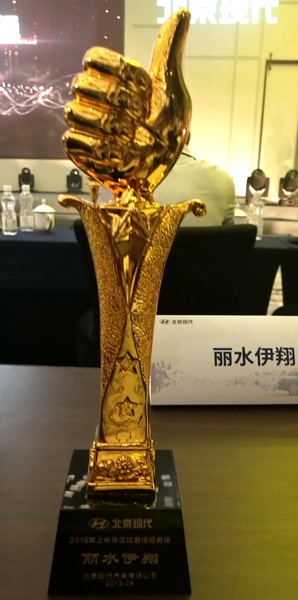 8月21日,在煙臺舉行的北京現代半年度經銷商大會上,麗水伊翔榮獲“2019年上半年區域最佳服務獎”。 工作中,伊翔公司全體員工團結進取、開拓創新,不斷提高服務質量,以優質的服務和熱忱的態度服務于廣大車主,獲得了廣大顧客和北京現代廠家的肯定。