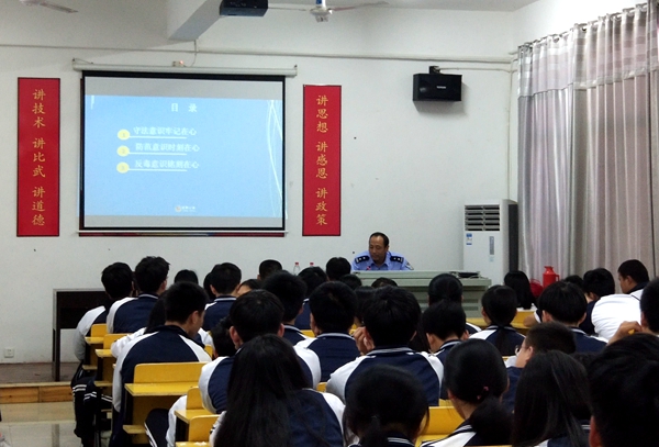 9月24日下午,學校特邀請蓮都區公安分局白云派出所民警曹起和對師生進行以《遵紀守法?共筑和諧校園》為主題的法制宣傳講座。講座主要圍繞四大主題展開:守法意識牢記在心、防范意識時刻在心、反毒意識銘刻在心、反邪教意識警惕在心。