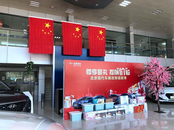 國慶將至,為了迎接新中國70華誕,營造良好的節日氛圍,伊翔公司對展廳內部和外部進行了重新布置,展廳內部懸掛了大大小小的國旗,外部懸掛了橫幅,伊翔公司以嶄新的面貌,用更好的服務來面對廣大客戶。