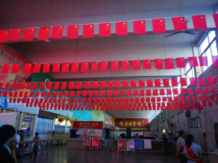 今年是中華人民共和國成立70周年,為團結(jié)動員廣大黨員干部和員工以極大熱情投身到車站的工作中,客運東站在候車廳、站場以懸掛國旗為主導(dǎo),配合彩旗和燈籠、鮮花,營造莊嚴肅穆的國慶氛圍,讓出行的旅客感受到濃厚的節(jié)日氣氛。