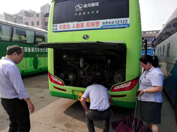 9月30日上午,旅游汽車分公司副經(jīng)理薛虹帶隊(duì)對(duì)東西兩站車輛進(jìn)行全面細(xì)致的安全大檢查,不放過任何一個(gè)盲區(qū),不留一處死角。對(duì)于安全設(shè)備不符合規(guī)定的、設(shè)施設(shè)備不齊全的車輛,督促其進(jìn)行安全檢修和更換,以保證車輛處于良好技術(shù)狀態(tài),確保節(jié)日期間旅客運(yùn)輸服務(wù)優(yōu)質(zhì)、安全、有序。