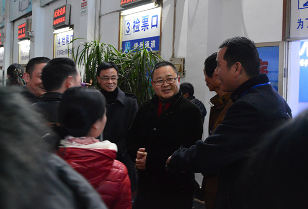 薛和有聽(tīng)取東站和客長(zhǎng)運(yùn)分公司負(fù)責(zé)人介紹春運(yùn)首日情況