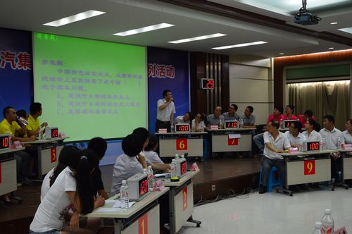 “十八大報(bào)告指出:要建設(shè)什么樣的馬克思主義執(zhí)政黨------搶答開(kāi)始。”隨著主持人的一聲令下,最吸引眼球的搶答環(huán)節(jié)開(kāi)始了。10支代表隊(duì)快速摁下?lián)尨鹌鳎@里比的不僅是黨史知識(shí),更是快速反應(yīng)的能力。40道搶答題,有的隊(duì)反應(yīng)快速,答題準(zhǔn)確,加上10分;有的隊(duì)答題心切,違規(guī)搶答,被倒扣分?jǐn)?shù);有的隊(duì)搶到了,答題不是很準(zhǔn)確,也被倒扣分?jǐn)?shù)。臺(tái)下黨員隨著他們的表現(xiàn)一會(huì)會(huì)心一笑,一會(huì)兒加油鼓掌,全場(chǎng)氣氛熱烈。