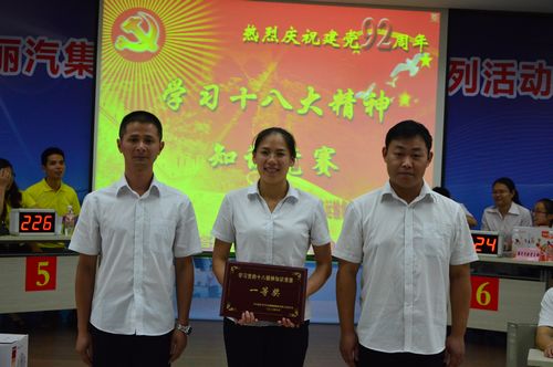 本次學(xué)習(xí)十八大精神知識(shí)競(jìng)賽,共有來(lái)自集團(tuán)公司機(jī)關(guān)和下屬基層黨支部的10支代表隊(duì)參賽。經(jīng)過(guò)緊張激烈的角逐,客運(yùn)西站黨支部代表隊(duì)以238分獲得一等獎(jiǎng);機(jī)關(guān)黨支部代表隊(duì)和旅游集散中心黨支部代表隊(duì)獲得二等獎(jiǎng);南明物流黨支部代表隊(duì)、客運(yùn)東站黨支部代表隊(duì)和檢測(cè)站黨支部代表隊(duì)獲得三等獎(jiǎng),其他黨支部代表隊(duì)獲優(yōu)勝獎(jiǎng)。