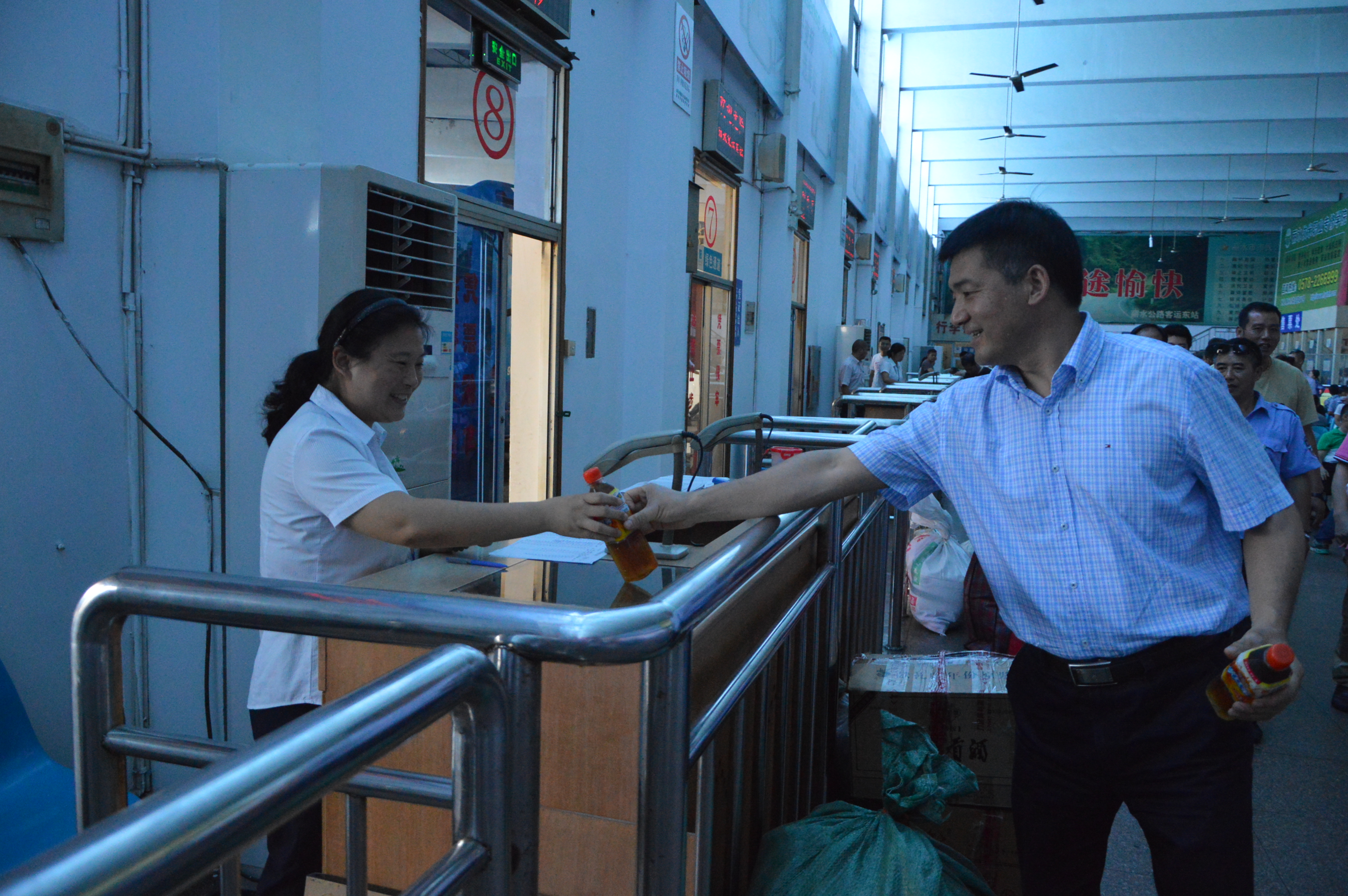 圖為總經(jīng)理薛和有為一線員工送清涼