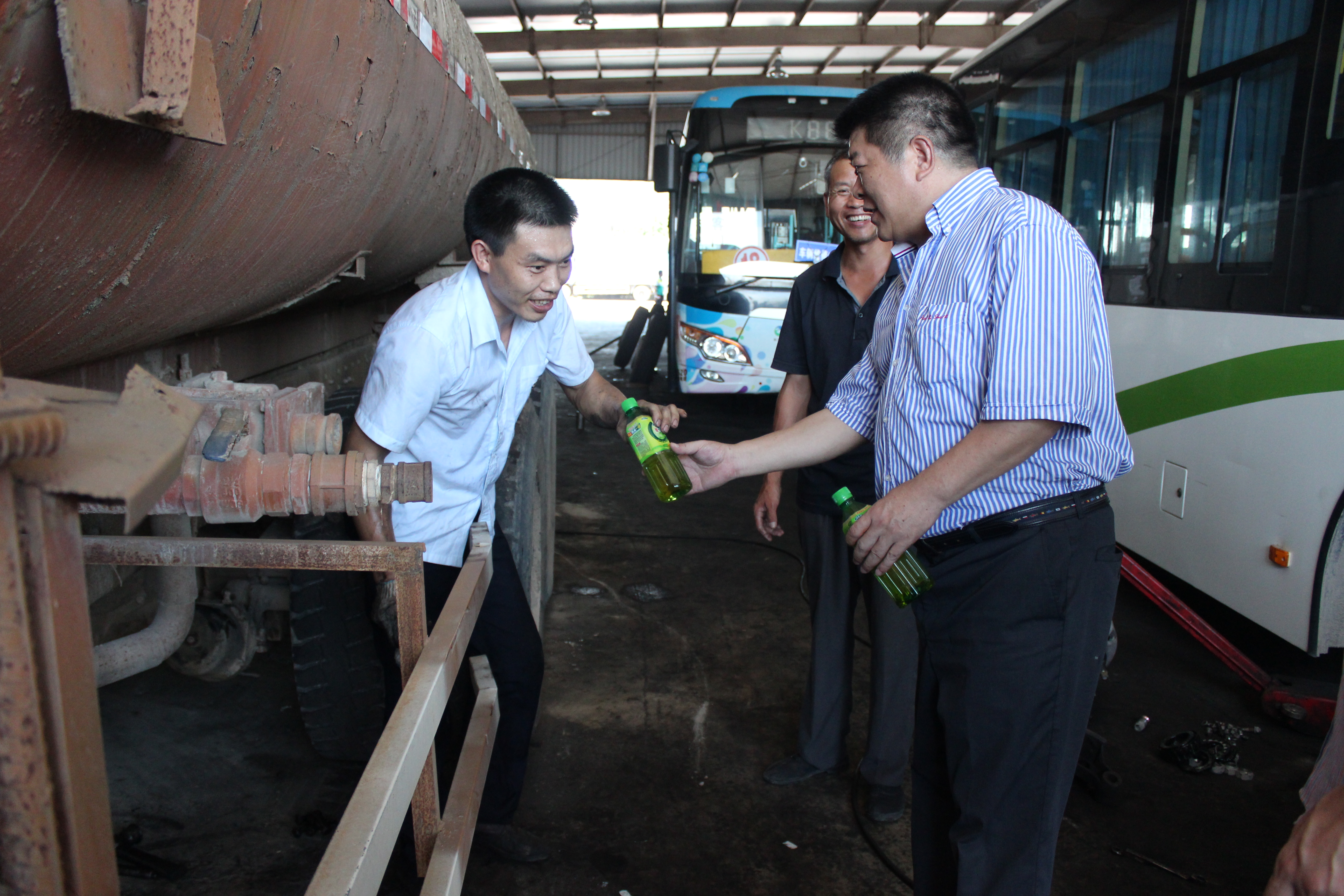 7月3日上午,集團(tuán)公司領(lǐng)導(dǎo)率3個(gè)送涼小組,帶著冰紅茶、冰綠茶等清涼飲品,到各基層單位慰問一線員工。
