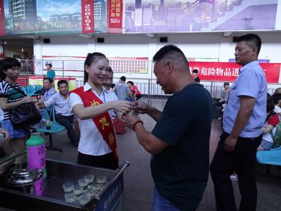 這幾天,麗水最高氣溫持續(xù)在39-40攝氏度之間,炎熱的太陽悶得讓人透不過氣。為做好防暑降溫工作,東站黨政領(lǐng)導(dǎo)結(jié)合實(shí)際,決定推出一項(xiàng)溫馨服務(wù):免費(fèi)為旅客送涼茶。選用茶葉、白菊花、金銀花等原料精心泡制清涼解暑的涼茶,組織服務(wù)人員在東站候車室免費(fèi)提供給來往的旅客和司乘人員,將絲絲涼意送到每一位出行旅客的心坎上。