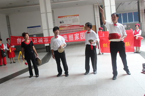 10月10日上午,蓮都區創衛宣傳隊走進客運西站,在候車室用他們自己編排的創衛節目向西站員工和過往旅客進行“創國衛”的宣傳。 宣傳隊員認真的表演,引來不少乘客駐足觀看。