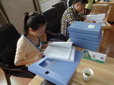 市創衛辦檢查組工作人員正在對東站的創衛臺帳進行檢查指導。