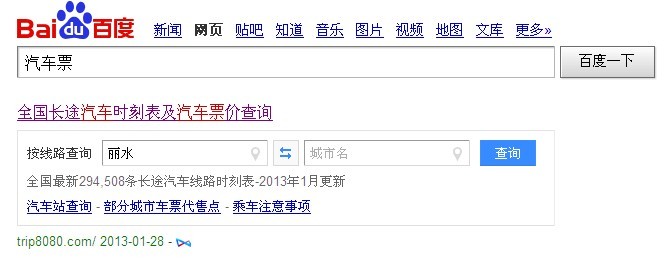 暢途網是由特捷交通技術系統有限公司開發運營的大型網上售票網站,網址為www.trip8080.com。暢途網通過與百度、搜狗、搜搜、360搜索等多家搜索引擎網站合作,旅客只要在相應的搜索引擎中搜索“汽車票”,就可查詢到麗水東、西兩站的班次信息。暢途網后續還將與淘寶、騰訊等其他電商合作,擴展汽車票的銷售渠道。目前已并網售票的客運站有300多家,還有200多家已簽約正在開通中。麗汽集團售票系統自今年7月24日并入暢途網后,已出售東、西兩站客票1500多張。