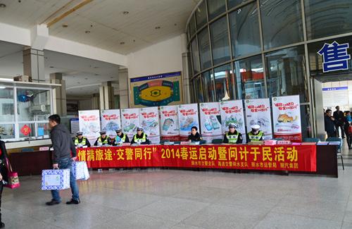 活動現(xiàn)場設立了咨詢臺,交警部門通過發(fā)放《駕駛?cè)舜哼\安全手冊》、《兒童交通知識畫冊》、《駕駛?cè)伺嘤柦坛獭返冉煌ò踩珪托麄鳟媰裕驈V大旅客們進行春運交通安全宣傳。此外,還向旅客們派送印有道路安全溫馨提示的年歷、新春福字,為旅客送上新年的祝福和平安。