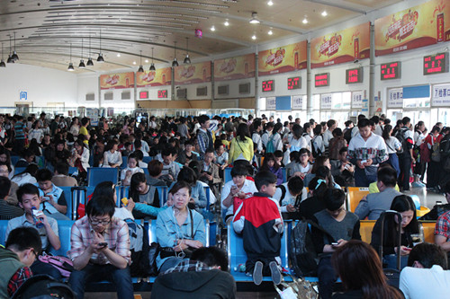 五一小長假期間,客運(yùn)西站候車廳座無虛席
