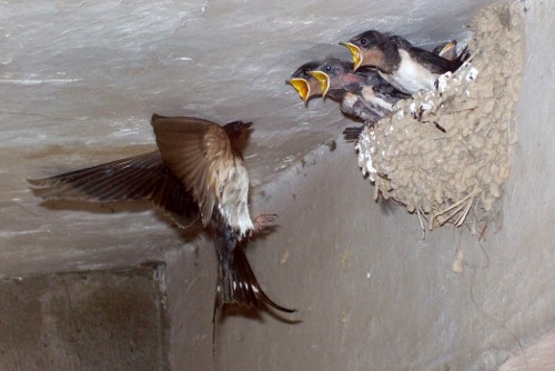 小時候我總喜歡觀察燕子。有時,我饒有興致地仰著頭,看它們喂養孩子。只要大燕子一出現,它們的孩子全部從巢里齊刷刷地仰起腦袋,露出黃色小嘴巴,嗷嗷叫嚷。有時無聊,我趴在外婆家閣樓的稻草堆上,看屋檐外的一群燕子停在閣樓的邊沿,當有一只燕子飛近時,燕子們都拍翅,叫喚著相迎。我看懂了它們的語言,它們在進行友好的表示。是同類,盡管陌生,它們卻能友好相處,沒有排斥,沒有人類社會的互相傾軋。我想燕子與人類的相處是動物和人類和諧相處的典范,人類接受了燕子并把燕子當作吉祥物供養,這是幾千年來一直延續下來的。就連北京舉辦奧運會,五個福娃中也有一只展翅飛翔的燕子“妮妮”,其造型創意來自北京傳統的沙燕風箏,寓意著妮妮把春天和喜悅帶給人們。
