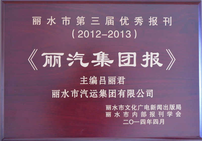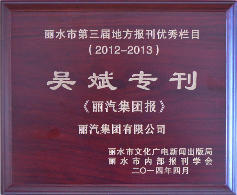 在5月23日召開的麗水市內(nèi)部報刊學會年會上,麗汽集團被授予麗水市內(nèi)部報刊學會副會長單位,《麗汽集團報》和《麗汽集團報--吳斌專刊》分獲表彰為麗水市第三屆優(yōu)秀報刊和麗水市第三屆地方報刊優(yōu)秀欄目。