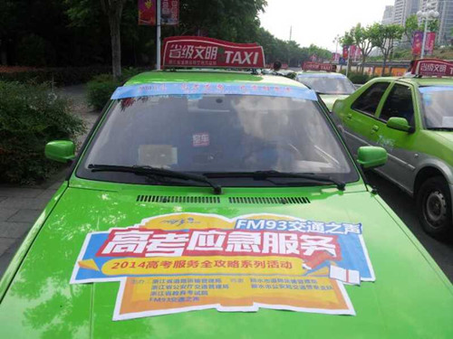 2014年,是我市出租車行業(yè)開展服務高考志愿行動的第7年,與往年相比,今年的高考應急服務措施更細致、更專業(yè)、更貼心。為了能為12年寒窗苦讀的學生做點貢獻,市區(qū)三家出租車公司三支省級文明出租車隊,共60輛“愛心肋考”車投入“服務高考志愿活動”。每輛“志愿助考”出租車的前、后擋風玻璃粘貼統(tǒng)一的助考標識,考生均可憑“準考證”免費乘車到考點。在麗水中學和麗水二中兩大考點將分別安排應急車在開考前1小時至開考后半小時定點為考生服務,其余車輛則分布于市區(qū)各個路段提供便捷服務。考慮到路況現(xiàn)狀,為了不耽誤考生“一生中最重要”的考試,準備10輛應急車輛。萬一遇到送考車輛發(fā)生拋錨故障,或者有突發(fā)事件影響送考的情況,應急車將及時頂上,保證在第一時間內(nèi)把考生接送至指定考場。另外,我們還設立了服務預約電話,考生可提前撥打麗水市道路運輸管理局服務熱線“96520”或市區(qū)三家出租車公司電話,我們將及時安排點對點高考應急服務。
