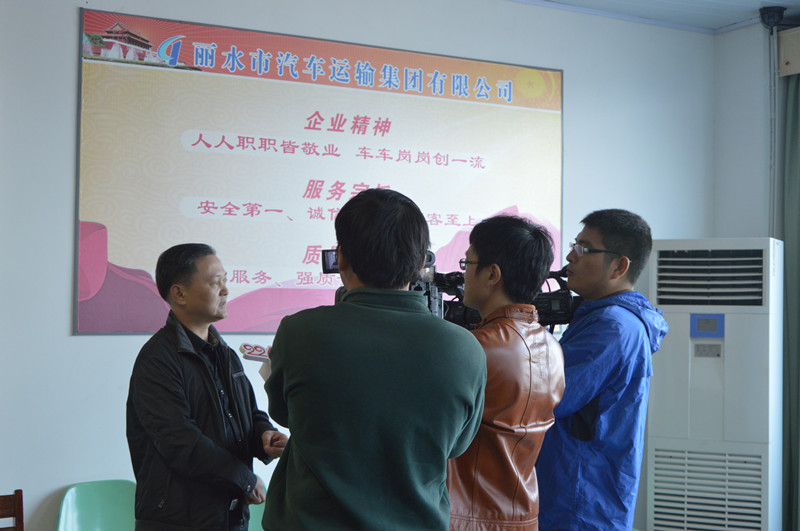 客長運分公司經理張文川正在接受麗水電視臺三個頻道的聯合采訪(張國軍/攝)