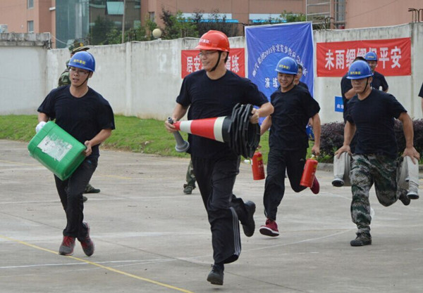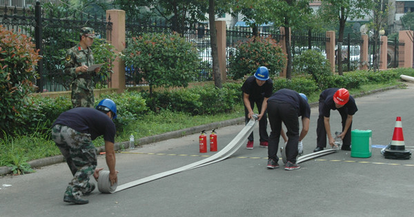 11個代表隊趕赴現場列隊集結完畢后,開始科目二演練。蓮都區消防大隊官兵首先給大家講解和示范了演練內容,然后各參演代表隊現場抽簽排定出場順序。首先出場的是房產傳媒聯合代表隊。一聲令下,四個隊員箭步沖向器材存放區,各自拿起相應的器材沖向操作區,兩位隊員放置泡沫桶、警戒桶,兩位隊員打開水帶、接好水槍。完成操作后,又緊急趕往滅火區。兩位隊員依舊迅速放置好泡沫桶、警戒桶,兩位隊員手拎滅火器,迅速拔掉安全插銷,從上風口向“起火點”噴射滅火劑。經過奮力撲救,火勢被完全撲滅。然后隊員們按原路返回,將器材放回存放區。其他10個代表隊也依次出場。