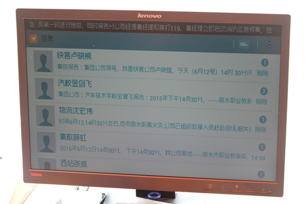 各單位聯系人短信報告事故情況
