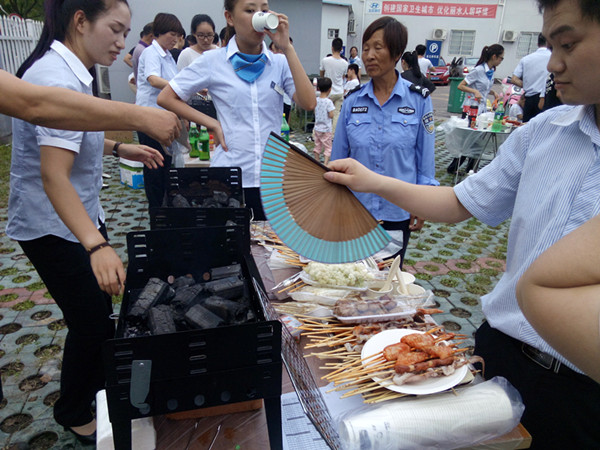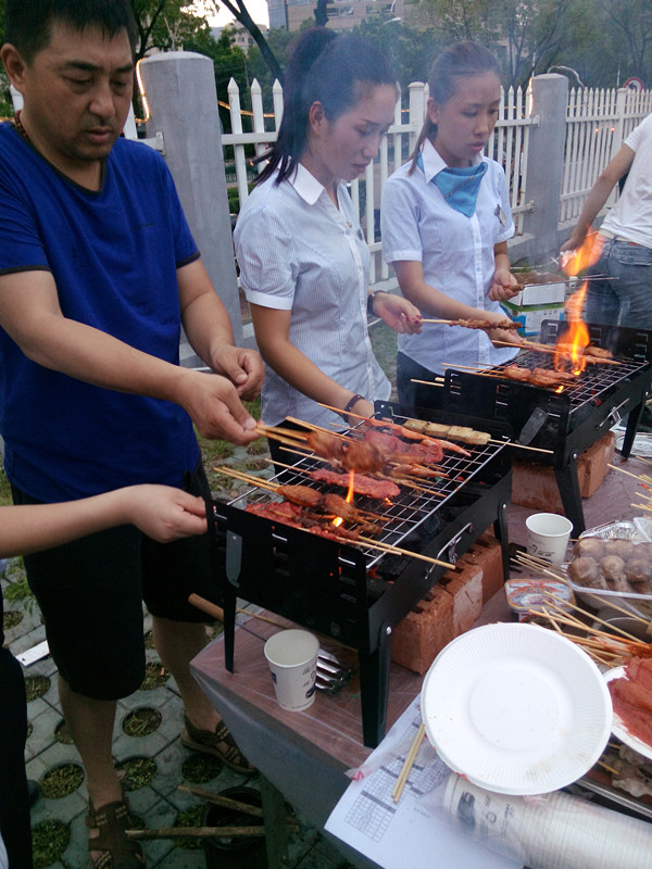 在大家的努力下,炭火終于燃燒起來了,燒烤也正式拉開了帷幕,同事們紛紛上場開始大顯身手,刷油、上烤架、刷調料,一陣陣香味引的路人紛紛駐足。有的同事技術高超,烤出來的食物色香味俱全,一出爐就被大家一掃而空,有的同事技術差了一點,烤出來的食物外焦里生,大家吃著自己親手烤出的各種食品,體驗了一把“自己動手豐衣足食”的樂趣。