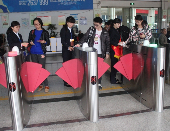 在西站候車廳,五臺嶄新的自助檢票機立于3-6號檢票口之間,形成4條自助進站閘機通道。據了解,與地鐵、高鐵閘機不同的是,我站采用的仍是普通紙質車票,通過紅外掃描即可進站乘車。目前,四條自助閘機通道僅限于成人票,一些特殊票種,如半票、軍票以及有攜帶免票兒童的旅客仍需走人工通道,這不僅是出于安全考慮,同時也是為了核驗免票兒童人數,防止超載。