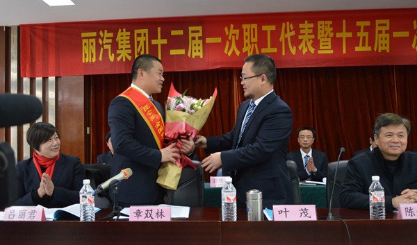 在章雙林發(fā)言之前,麗汽集團總經理薛和有向大家報告了章雙林獲得“全國見義勇為英雄司機”和“中國好司機”并北京人民大會堂接受表彰的情況。麗汽集團黨委書記、董事長葉茂代表集團公司全體干部員工向章雙林獻花,歡迎英雄載譽歸來!