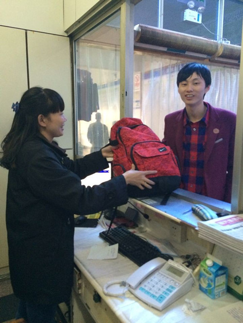 “您好,這里是客運東站服務處,您落在車上的背包我們已經幫您找到了,請您有空的時候過來取。”服務 組組員李一斌平靜中帶點興奮地說。